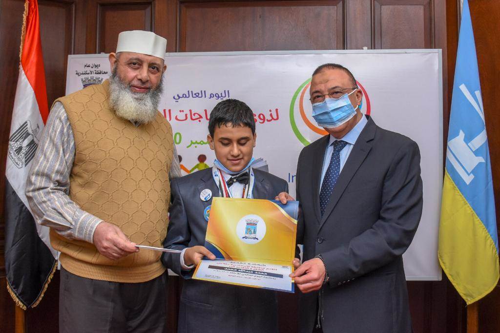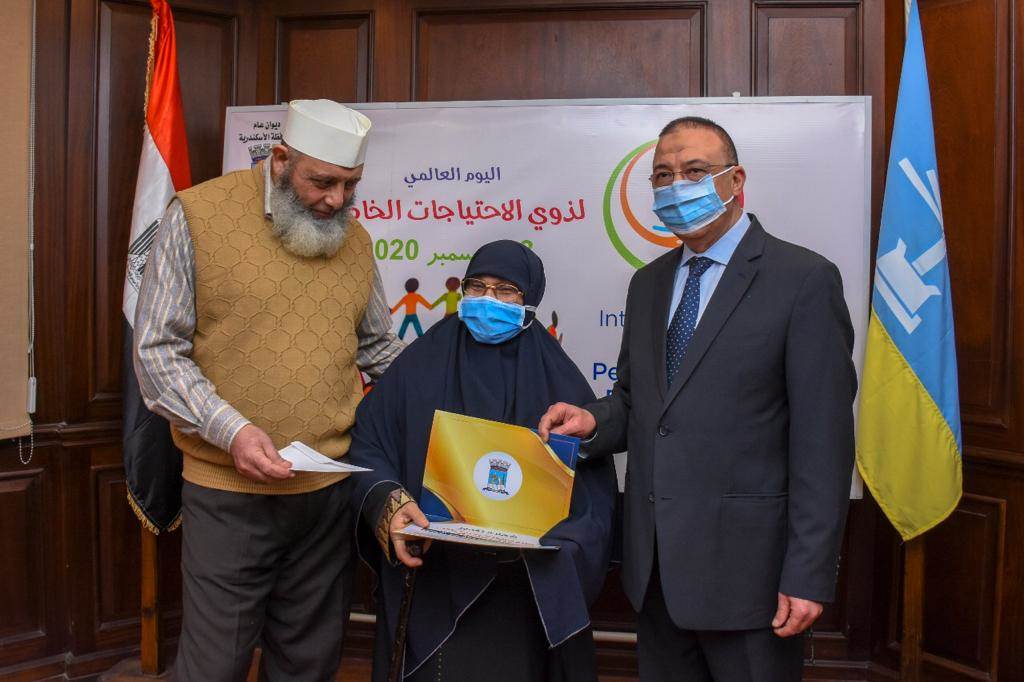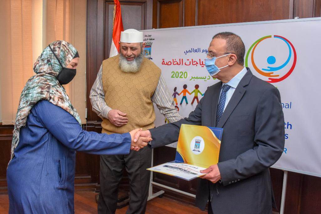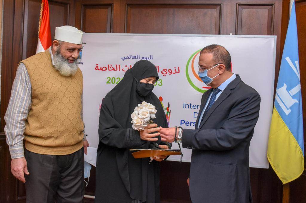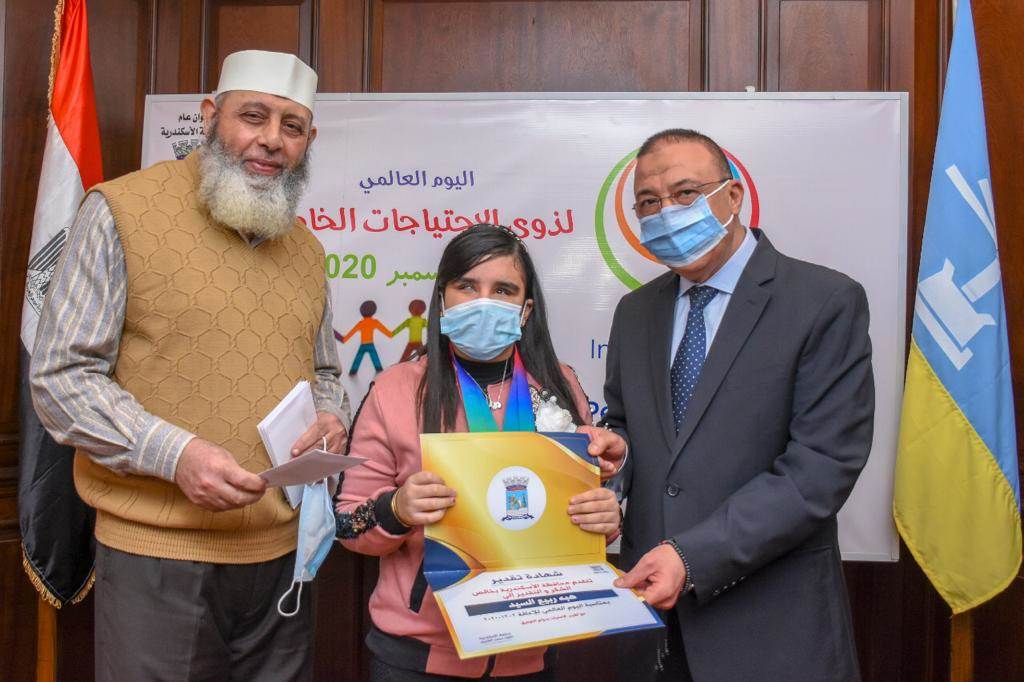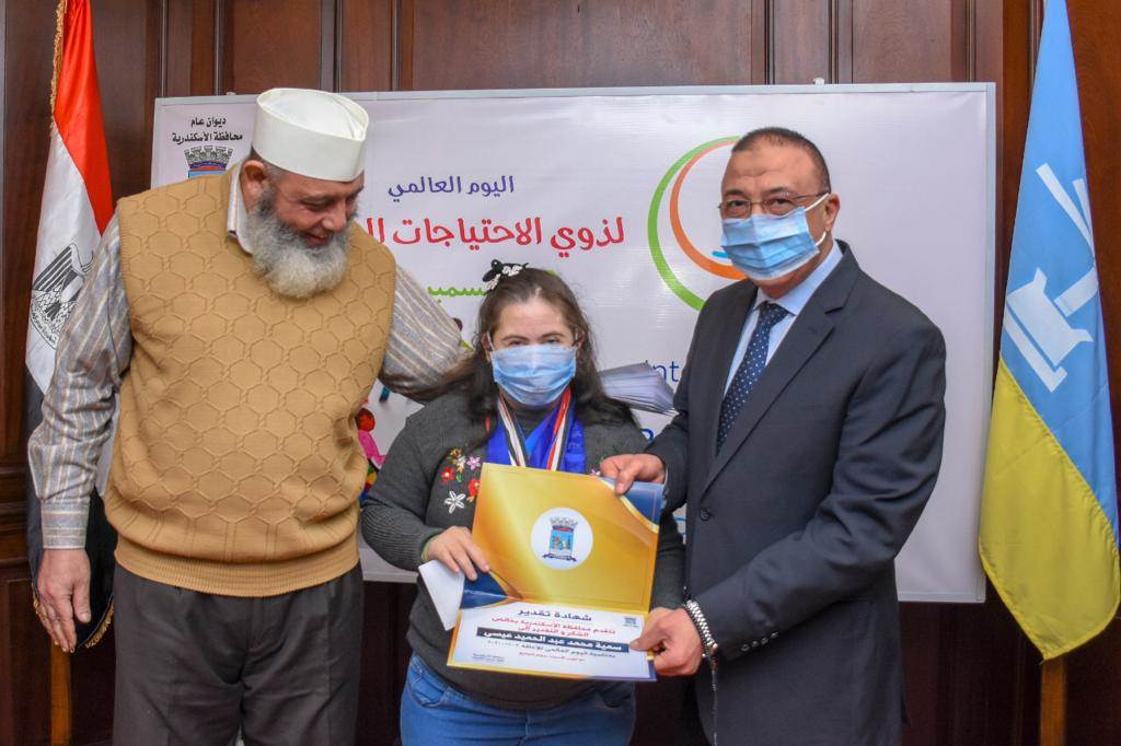 كرم اللواء محمد الشريف محافظ الإسكندرية ، اليوم مجموعة من المتفوقين رياضيا وثقافيا وفنيا من ذوي الهمم ، وعددا من أمهاتهم ، وذلك في إطار الاحتفال باليوم العالمي لذوي الاحتياجات الخاصة ، والذي يتم الاحتفال به في ٣ ديسمبر من كل عام ، وذلك بحضور مسؤولي الجمعية الشرعية التابعة لمديرية التضامن الاجتماعي المشاركين في التكريم .