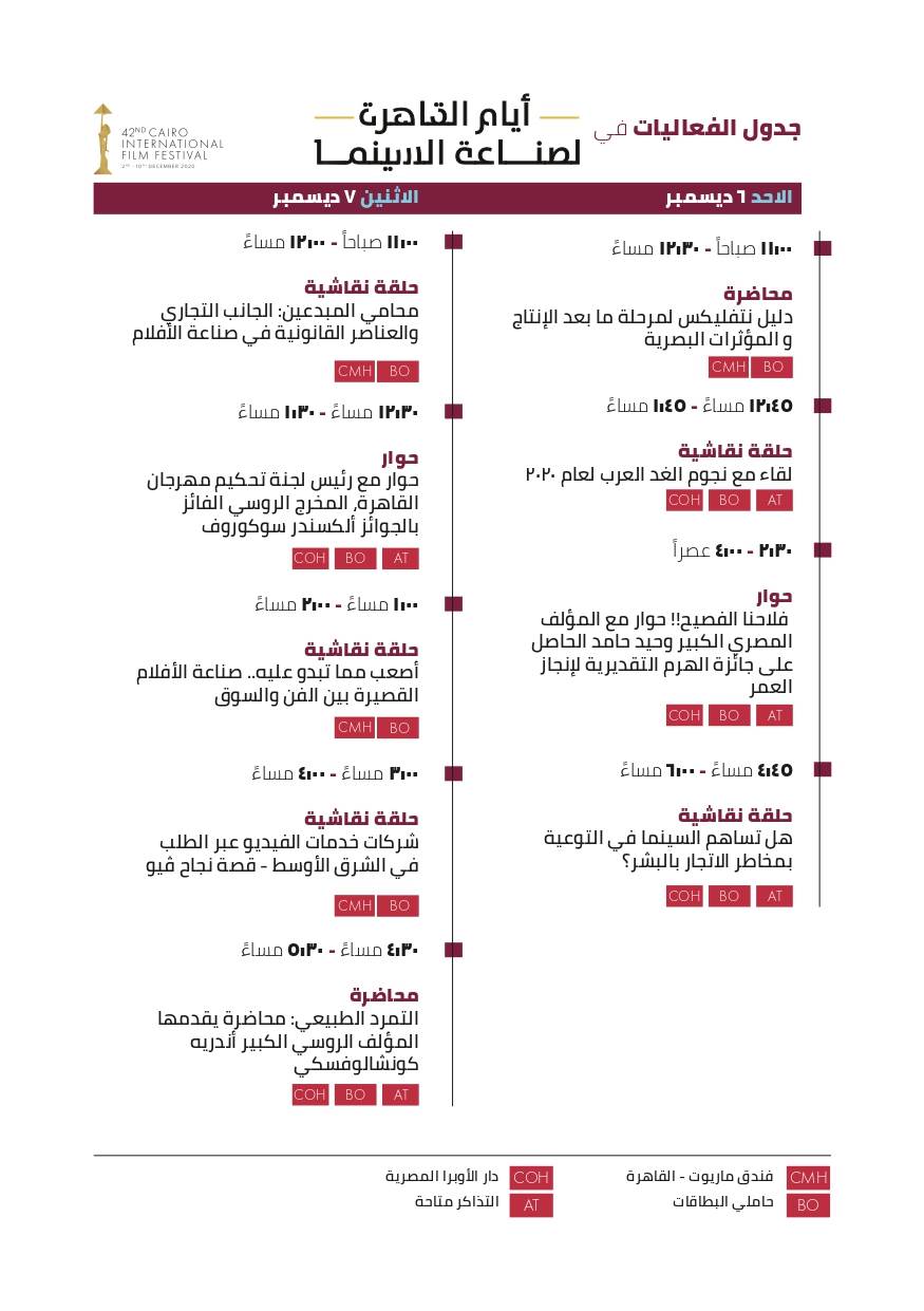 ننشر تفاصيل جدول فعاليات أيام القاهرة لصناعة السينما بـ"القاهرة السينمائي"