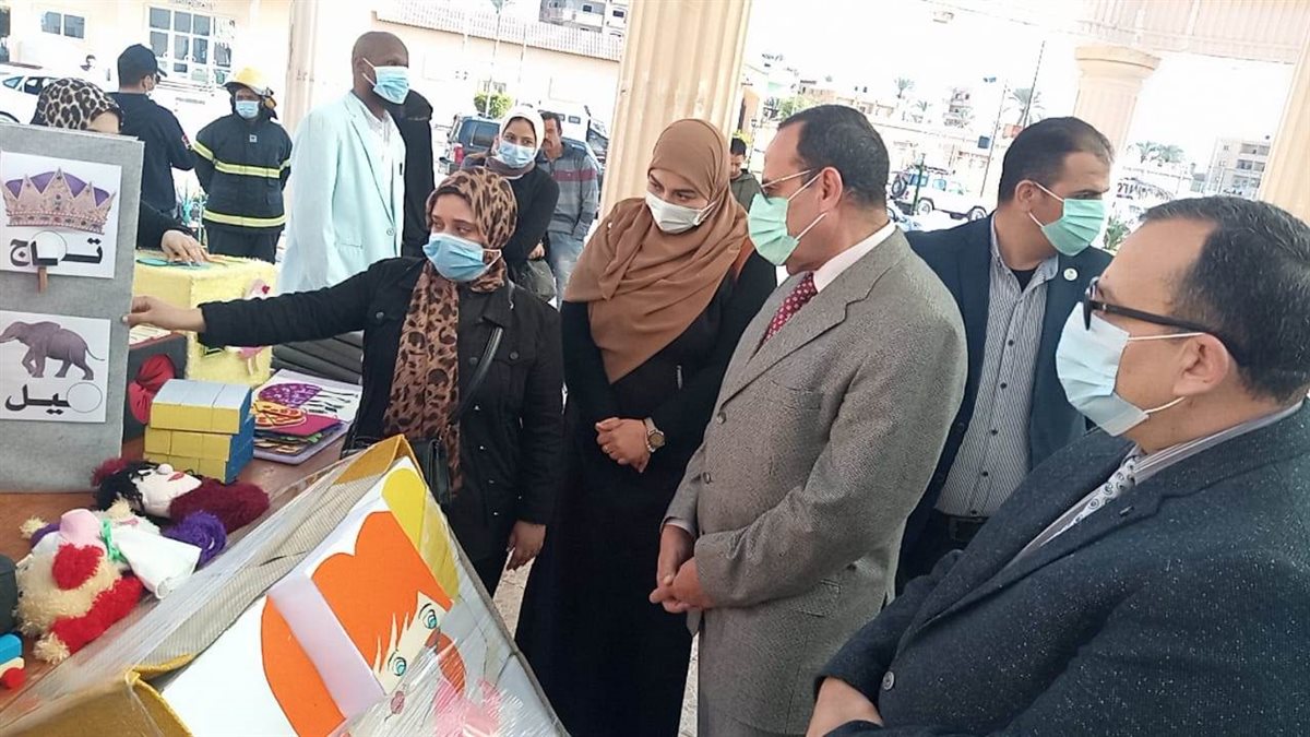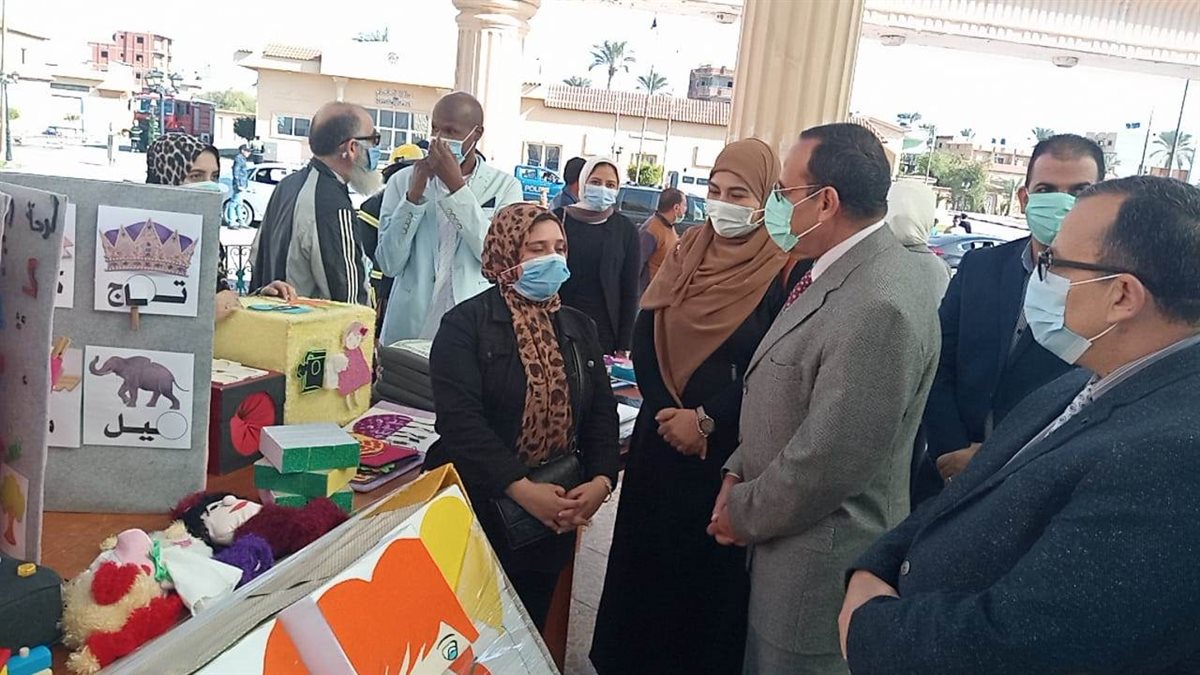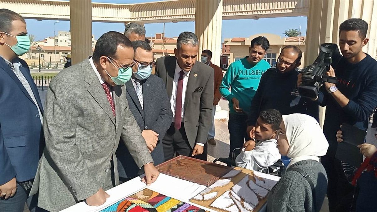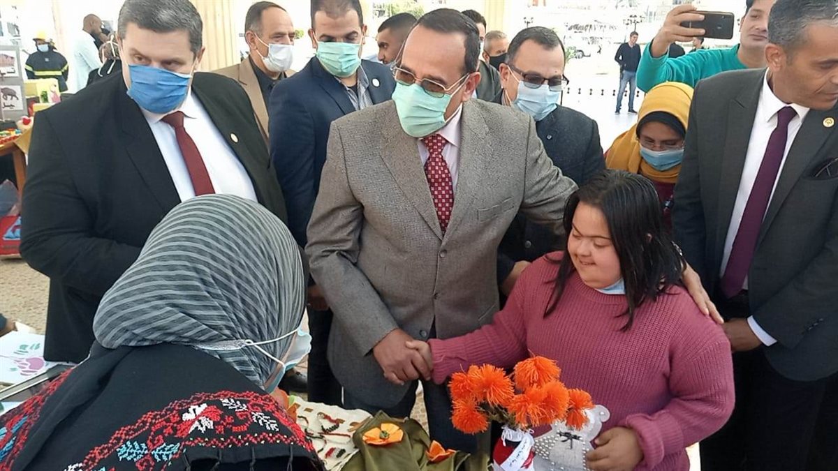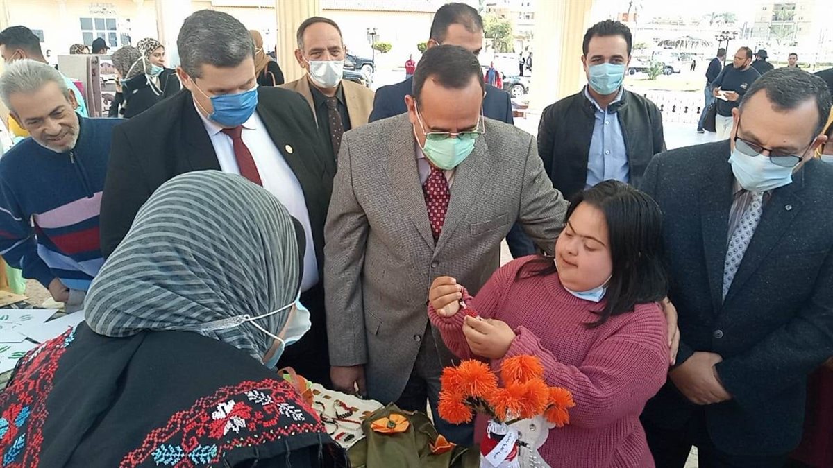 وقد بدأ الاحتفال بافتتاح المحافظ لمعرض المشغولات اليدوية والفنون التشكيلية بالمدينة الشبابية ، والذي يضم عددا من اللوحات الفنية والمجسمات والمشغولات اليدوية والتطريز والخرز والهدايا التذكارية من تنفيذ وإعداد طلاب مدارس التربية الخاصة والشباب والرياضة ونادى المعاقين وجامعة العريش.
