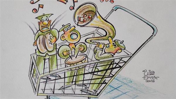 والأعمال للفنانين صاروخان وسانتيس وطوغان وجمعة فرحات، وزهدى ومصطفى حسين وايهاب شاكر وجورج البهجورى ورمسيس وتاج وصلاح الليثى وصلاح جاهين ومحيي الدين اللباد ومحسن جابر واخرين.
