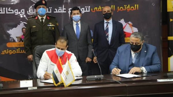 شهد الدكتور أشرف صبحي وزير الشباب والرياضة ،اليوم الثلاثاء، مراسم توقيع عقود تسويق ووكالة لثلاثة لاعبين بحضور كل من العميد صبري مصيلحي رئيس جهاز الرياضة العسكري، و اللواء أحمد ناصر رئيس الكونفدرالية الإفريقية، والدكتورة حياة خطاب رئيس اللجنة البارالمبية، والدكتور وليد الملاح رئيس مجلس إدارة شركة روابط الرياضية، وعدد من قيادات الوزارة.