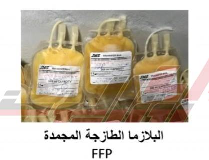 - البلازما الطازجة المجمدة FFP“كل الفصائل” والتي تحتوى على كل عوامل التجلط بنسب قياسية.