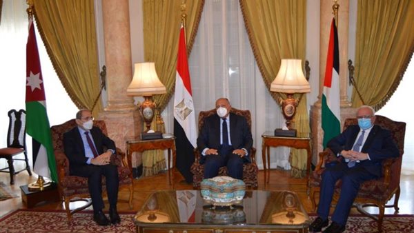 وكان شكرى ونظيريه الأردني والفلسطيني عقدوا اليوم اجتماعا ثلاثيا تشاوريا، ثم مؤتمرا صحفيا مشتركا.