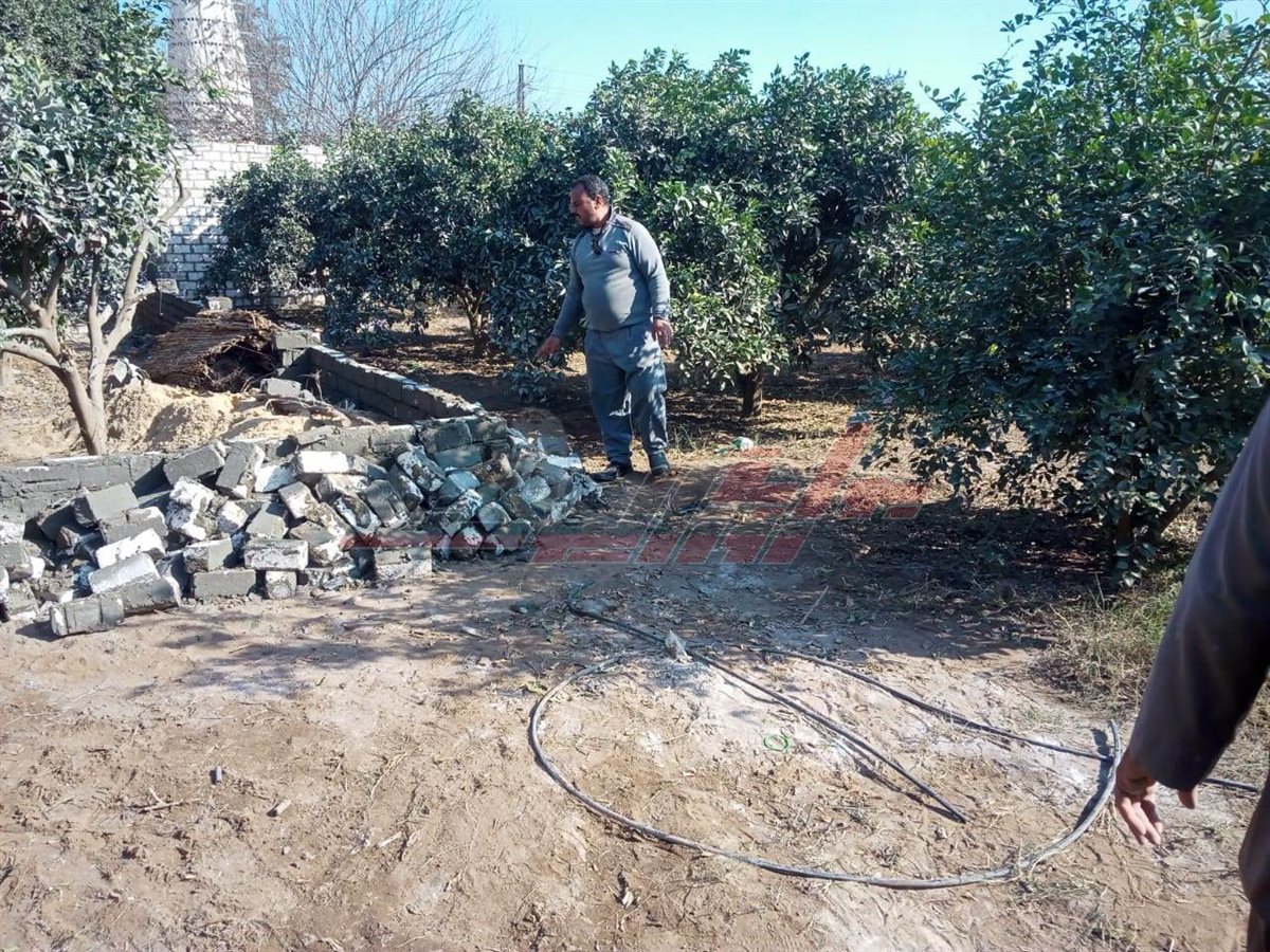 كماتم إزالة 2 حالة تعدٍ بمساحة 680 م٢ بقري الابعادية وافلاقه بدمنهور عبارة عن أسوار بالطوب الأبيض و إزالة 3 حالات تعدٍ في المهد علي الأراضي الزراعية بمساحة 495 متر بقرية طيبة بالدلنجات عبارة عن مباني مقسمة من الطوب الأبيض والمونه الاسمنتية ، كما تم فك شده خشبية وفك حديد التسليح بقرية المسين.