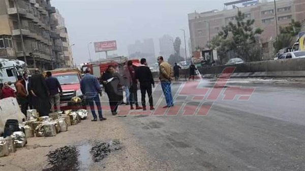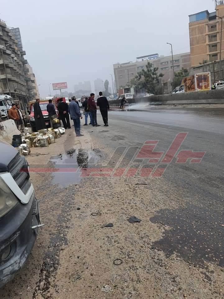 تم الدفع بسيارة الحماية المدنية لإزالة العسل بالمياه، جارٍ عودة الحركة المرورية لطبيعتها، وتولت النيابة التحقيق.