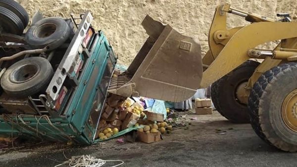 انقلبت سيارة نصف نقل محملة بفاكهة بالطريق الصحراوي الغربي بمركز الغنايم في أسيوط، دون وقوع إصابات.