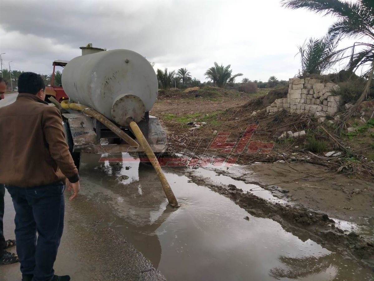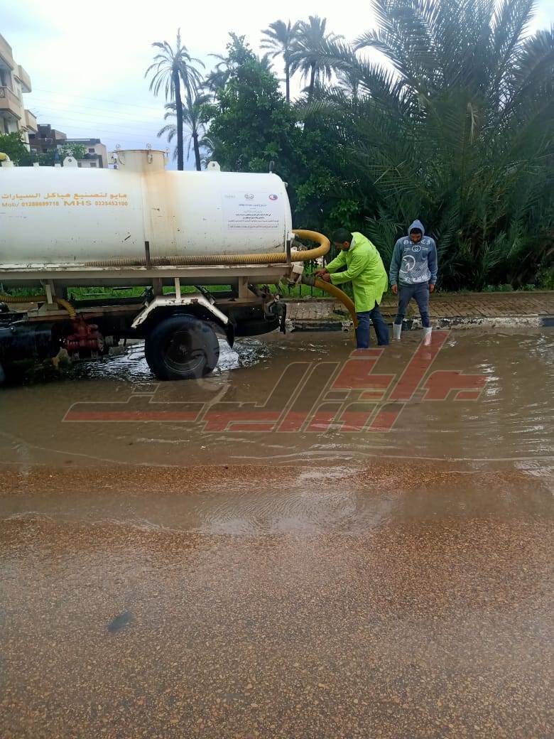 انتشار معدات الوحدات المحلية لكسح مياه الأمطار المتراكمة بالبحيرة