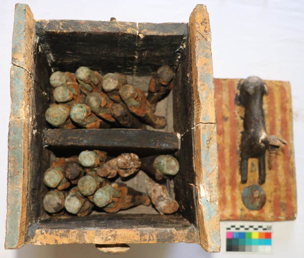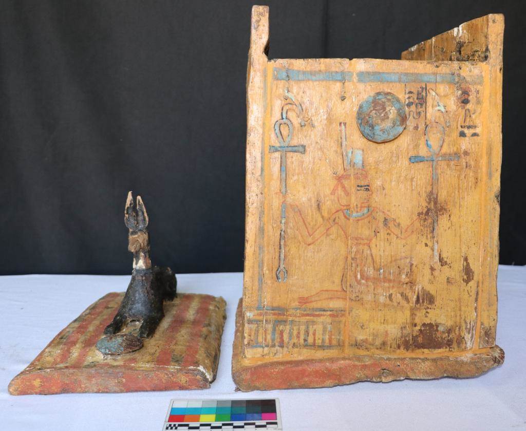 هذا بالإضافة إلى مجموعة من الأقنعة الخشبية وكذلك مقصورة الإله انوبيس إله الجبانة ، وعثر له على تماثيل بحاله جيده وكذلك العديد من الألعاب التي كان يلعب بها المتوفى في العالم الآخر مثل لعبة (السنت) التي تشبه الشطرنج حاليا، وكذلك لعبة العشرين مسجل عليها اسم الشخص الذي كان يلعب بها.