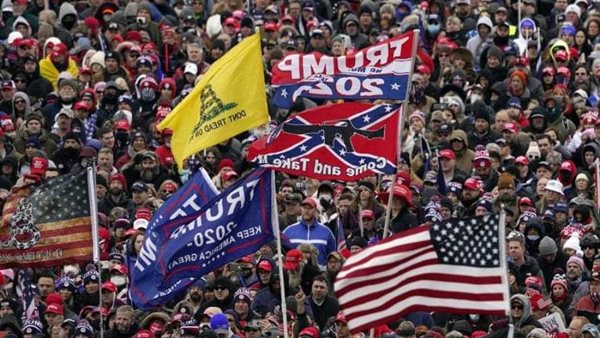 ويوم 6 يناير، أحضر أنصار ترامب، رموز الجنوب القديم إلى حصار مبنى الكابيتول، حاملين أعلام الكونفدرالية في الداخل وحتى نصبوا مشنقة خشبية بشنقة خارج المبنى.