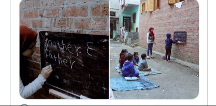 ووفقا لسبوتنيك ،نشرت الناطقة باسم الحكومة البريطانية في الشرق الأوسط وشمال إفريقيا روزي دياز، صورا للطفلة المصرية ريم، التي أعدت فصلا دراسيا للأطفال بإحدى المناطق يعتمد على صبورة على معلقة على حائط وأطفال يجلسون على الأرض بينما تقوم بشرح بعض الدروس لهم.