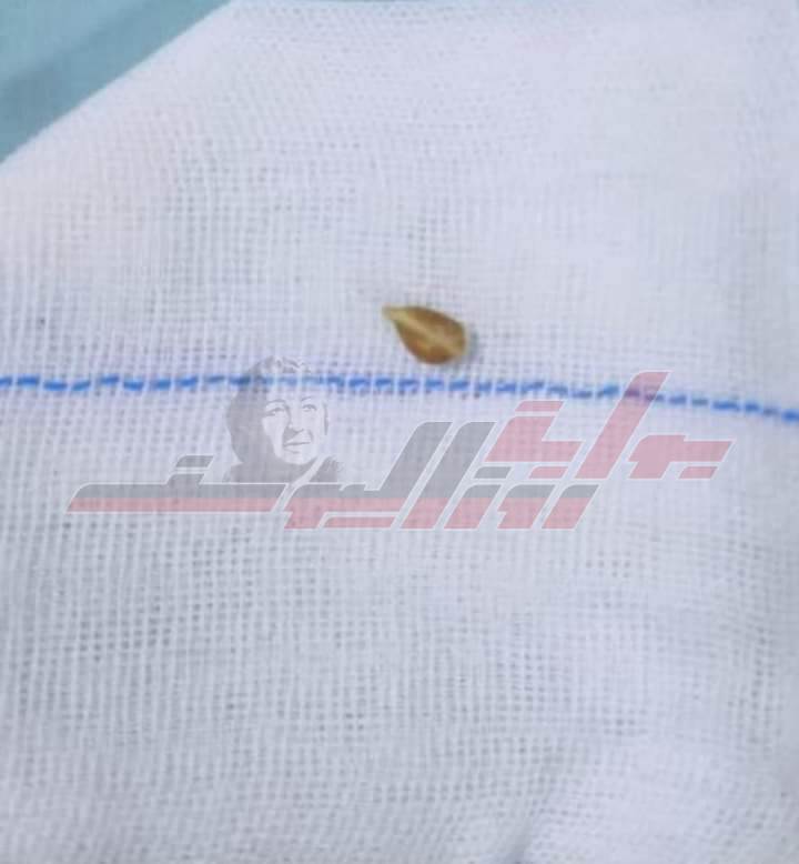 وأكد الجزار أنه فوجئ بعد أن خاطر وبدخول منظار شعب هوائية طارئ استكشافي نكتشف وجود "بذرة يوسفي"، والسبب فى صعوبة أكل وتنفس الطفل لمدة أسبوعين.