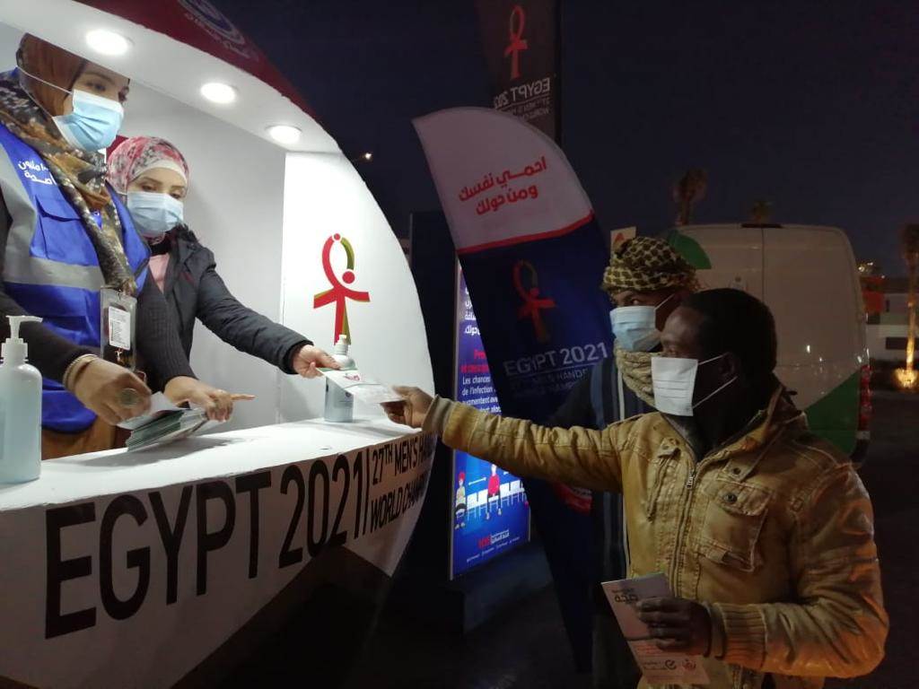 وفيما يخص نشر الوعي خلال فعاليات المباريات، يتم تقديم التوعية اللازمة بالإجراءات الوقائية والاحترازية لفيروس كورونا المستجد لجميع المشاركين في البطولة من خلال الأكشاك الطبية المتواجدة داخل الاستادات الرياضية وأمام صالات الألعاب التي تضم فرق من المثقفين الصحيين بوزارة الصحة والسكان.