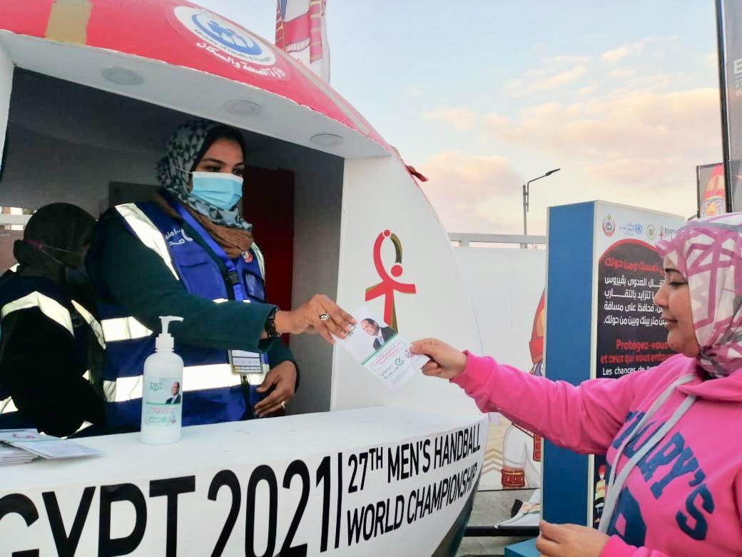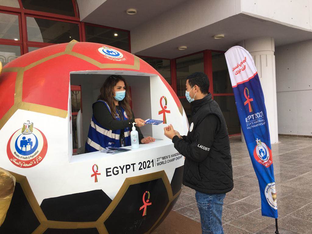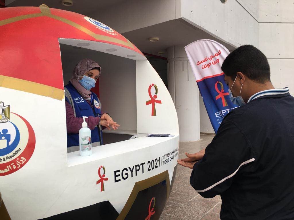 وتقدم فرق المثقفين الصحيين بوزارة الصحة والسكان، التوعية اللازمة بالإجراءات الوقائية والاحترازية لفيروس كورونا المستجد لجميع المشاركين في البطولة من خلال الأكشاك الطبية المتواجدة داخل الاستادات الرياضية وأمام صالات الألعاب.