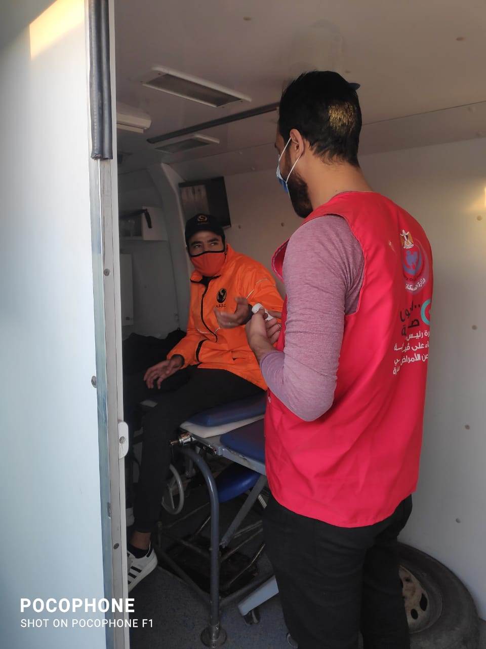 فرق المثقفين الصحيين بوزارة الصحة والسكان تقوم بتقديم التوعية اللازمة بالإجراءات الوقائية والاحترازية لفيروس كورونا المستجد لجميع المشاركين في البطولة من خلال الأكشاك الطبية المتواجدة داخل الاستادات الرياضية وأمام صالات الألعاب.