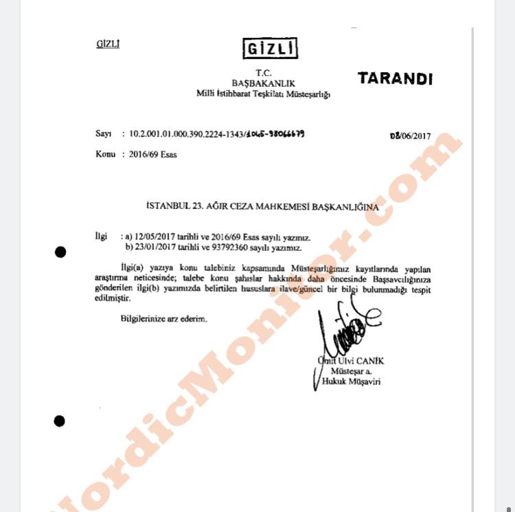 وطلبت المحكمة من المخابرات التركية تحديد مكان إسماعيلوف ومصطفى، لكن المستشار القانوني للمخابرات التركية أوميت أولفي، أخبر المحكمة في رسالة سرية بتاريخ 8 يونيو 2016 أن المخابرات ليس لديها معلومات عن مكان وجودهما.
