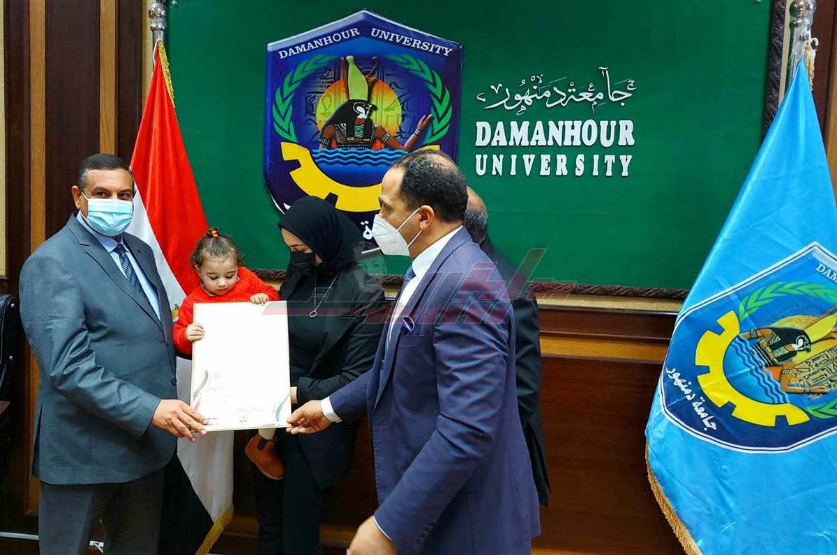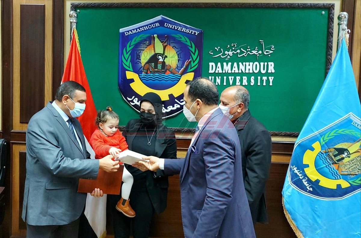 كرمت جامعة دمنهور أسرة الشهيد البكل احمد بهجت مناع، اليوم الأحد بحضور اللواء هشام آمنة محافظ البحيرة والدكتور عبيد صالح رئيس الجامعة.