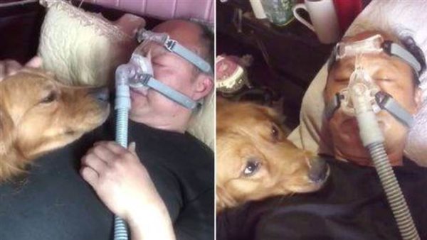 يعاني صاحب الكلب من ارتفاع ضغط الدم وأمراض القلب ويمكن أن يعاني أحيانًا من سكتة قلبية مفاجئة، لذلك اقترح عليه طبيب النوم بجهاز التنفس الصناعي.