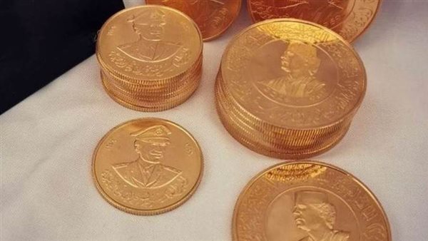 عرض محلات مجوهرات في مدينتي طرابلس وسرت، الليبيتين، مجموعة من العملات الذهبية من عيار 22، للبيع، تحمل صورة الراحل معمر القذافي.