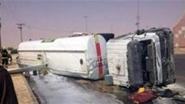 انقلاب سيارة محملة بـ11 طن مواد بترولية بمركز القوصية