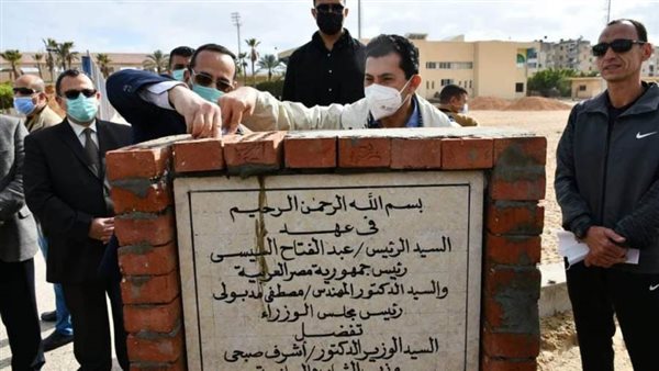 وضع الدكتور أشرف صبحى وزير الشباب والرياضة، يرافقة اللواء محمد عبدالفضيل شوشة محافظ شمال سيناء، اليوم حجر أساس الملاعب الفرعية" ملعب كرة قدم قانوني منجل بالنجيل الصناعي، وملعب اكريلك متعدد الأغراض" بإستاد العريش.