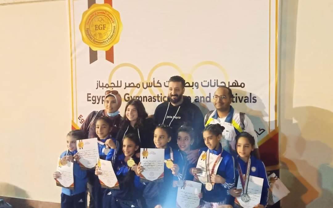 حصد الفريق 2 ميدالية ذهبية والمركز الأول لنجماته: هنا معتز عطية ونادين وليد حسين.