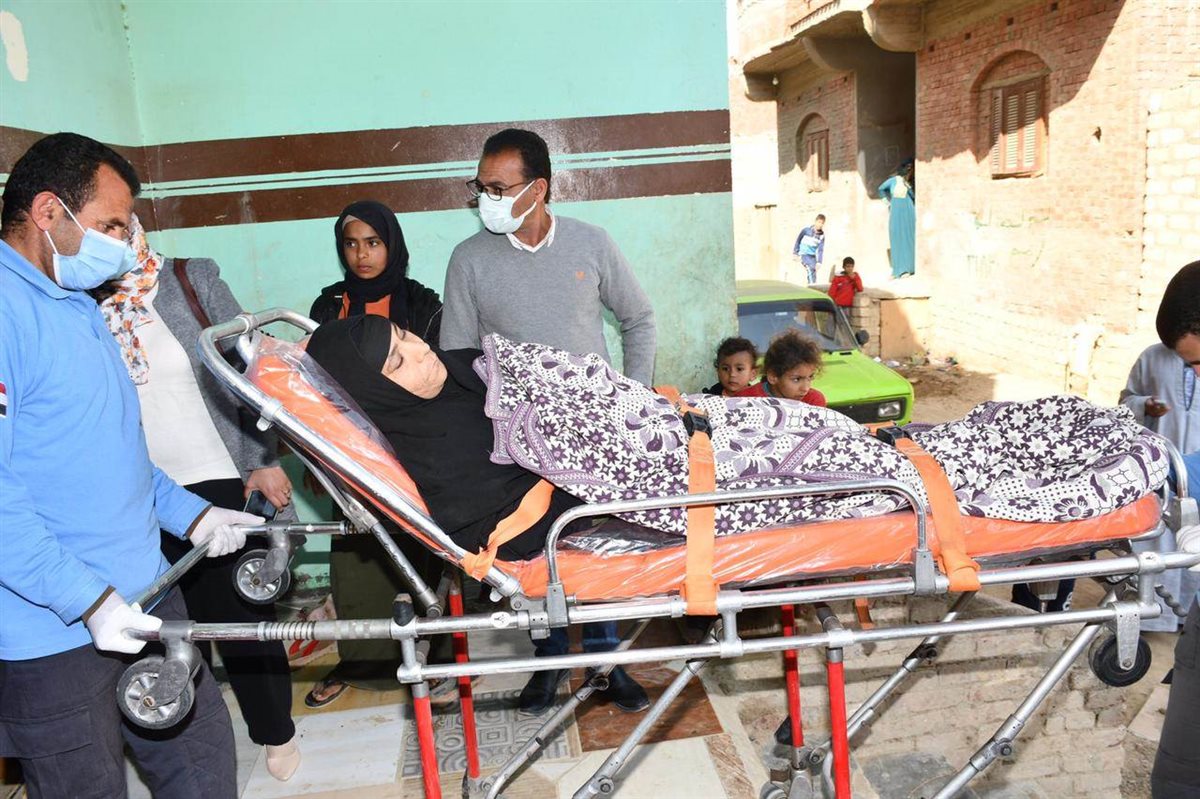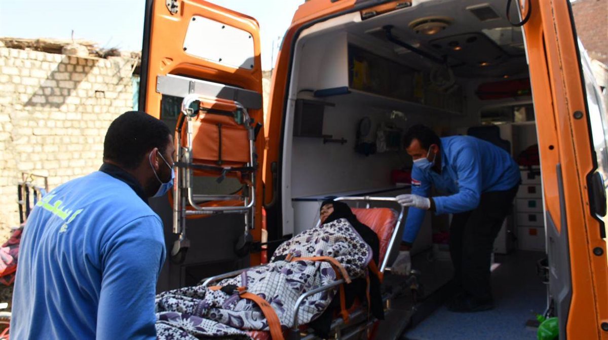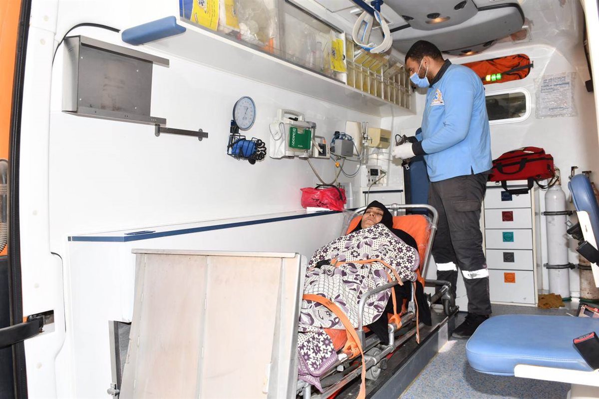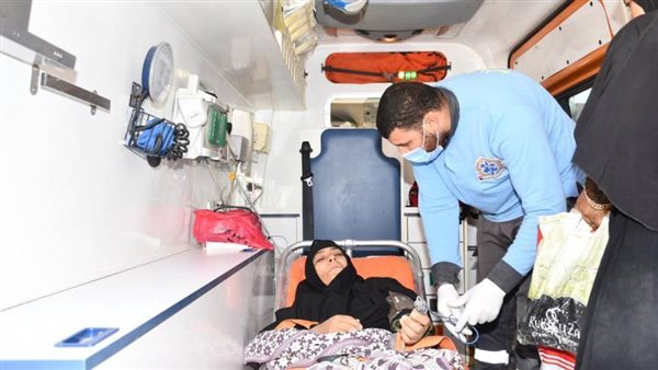 "عواطف" المقيمة بقرية كوم أوشيم مركز طامية بمحافظة الفيوم، تبلغ من العمر 45 عامًا، وتعاني من شلل نصفي، وتم نقل الحالة بواسطة سيارة إسعاف مجهزة وفريق من المسعفين إلى مستشفى الشيخ زايد التخصصي بمحافظة القاهرة.