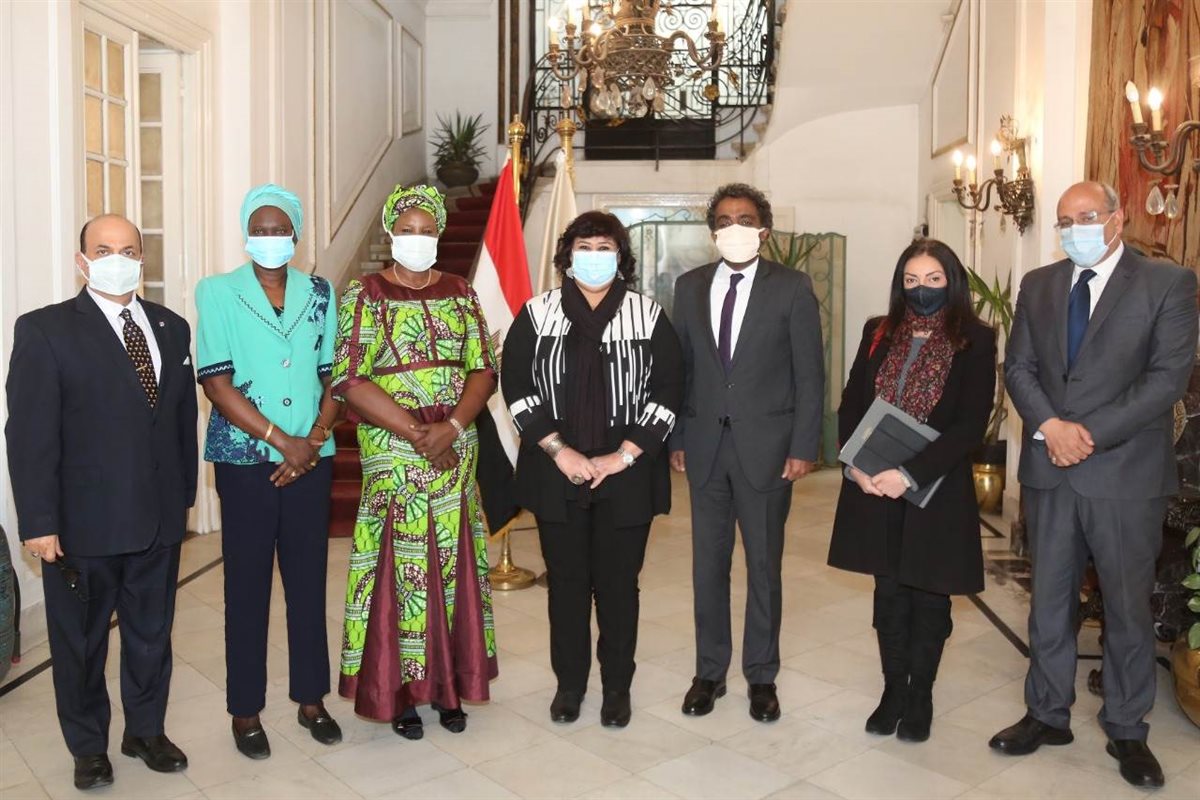 استقبلت الدكتورة إيناس عبد الدايم، وزيرة الثقافة، الدكتورة نادية أروب نظيرتها بدولة جنوب السودان، لبحث سبل تعزيز التبادل الثقافي والفني بين البلدين، وذلك بحضور ايوم مكور ضيل مساعدة الملحق الادارى بسفارة جنوب السودان بالقاهرة، الدكتور أحمد عواض رئيس الهيئة العامة لقصور الثقافة، الدكتور فتحى عبد الوهاب رئيس صندوق التنمية الثقافية، الدكتورة سعاد شوقى رئيس قطاع العلاقات الثقافية الخارجية والسيناريست محمد الباسوسى رئيس المركز القومى للسينما .