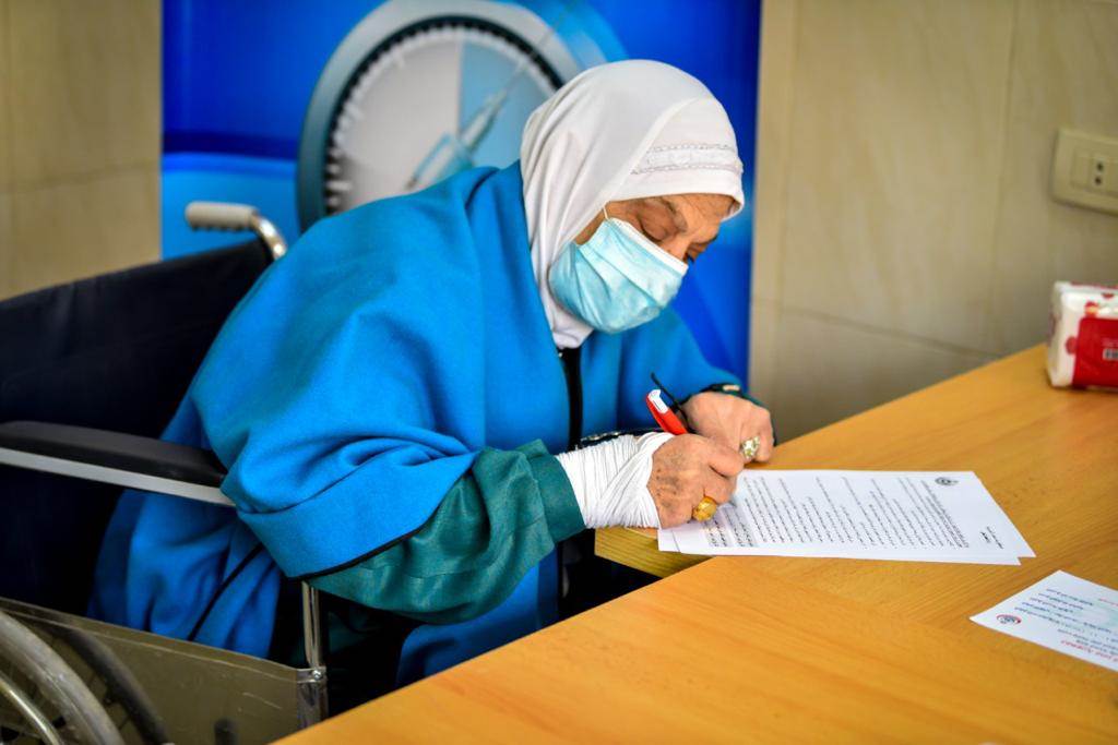 وبعد انتقال المواطن إلى غرفة الموافقة المستنيرة، وهي المرحلة الثانية في خطوات الحصول على الجرعة الأولى للقاح داخل مراكز التطعيم، يتم الرد على كافة استفساراته، وشرح البنود الخاصة بالموافقة من خلال الطاقم الطبي المتواجد، كما يتم مراجعة بيانات المواطن والتحقق من استيفاء كافة المستندات، وفي حال عدم قدرة المواطن على القراءة والكتابة يقوم بوضع البصمة في وجود شاهد محايد، ويقوم الطبيب المعني بالتوقيع على الاستمارة، ويتم إعطاء نسخة منها للمواطن للاحتفاظ بها.