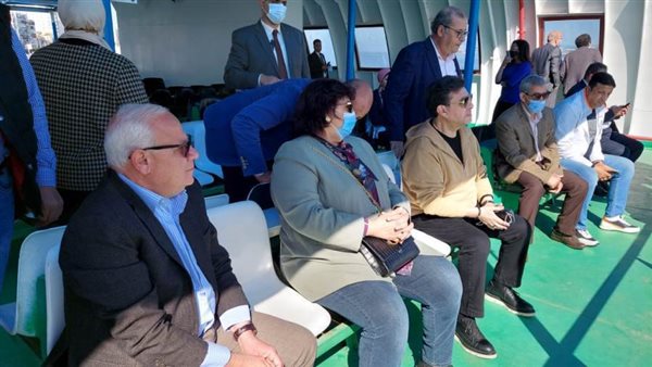وزير الثقافة ومحافظ بورسعيد وهاني شاكر في جولة بحرية بقناة السويس
