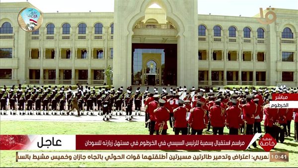 أجريت صباح اليوم السبت، مراسم استقبال رسمية للرئيس عبدالفتاح السيسي في العاصمة السودانية الخرطوم في مستهل زيارته الرسمية التي تستغرق يوما واحدا.