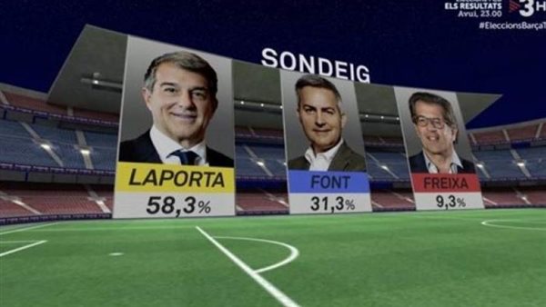 وأكدت القناة الثالثة الكتالونية، أن خوان لابورتا فاز في الانتخابات الرئاسية لنادي برشلونة، متفوقا على المرشحين توني فريشيا.