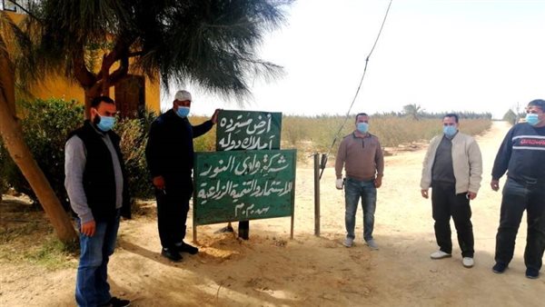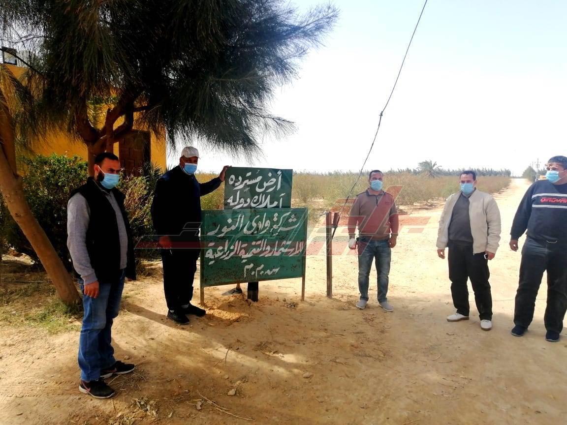 كما تم استرداد قطعة ارض بمساحة ٦٤١ فدان ٩ قيراط واتخاذ كافة الإجراءات القانونية اللازمة حيالهم ووضع لافتات "أرض مستردة أملاك دولة" علماً بأنه سيتم استرداد باقي القطع بشكل دوري من الغير جادين.