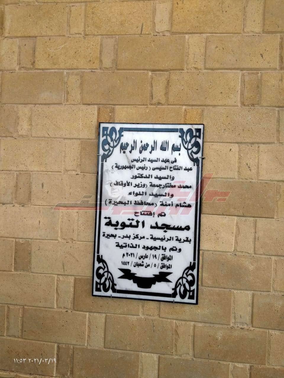 كما تم افتتاح مسجد 6/4 أبيس بقرية الثورة مركز كفر الدوار والمقام بالجهود الذاتية بإشراف وزارة الأوقاف على مساحة 250 مترًا بتكلفة إجمالية 2 مليون جنيه، ومسجد عمر بن الخطاب بقرية بلقطر مركز أبو حمص والمقام بالجهود الذاتية بإشراف وزارة الأوقاف على مساحة 167 مترًا بتكلفة إجمالية 2 مليون جنيه ومسجد النور بقرية بوالينو مركز دمنهور والمقام بالجهود الذاتية بإشراف وزارة الأوقاف على مساحة 366 مترا بتكلفة إجمالية 2 مليون و688 ألف جنيه ومسجد عزبة السيد بعزبة السيد الشخيبي مركز كفر الدوار والمقام بالجهود الذاتية بإشراف وزارة الأوقاف على مساحة 190 مترا بتكلفة إجمالية مليون و500 ألف جنيه ومسجد التوبة بقرية المعركة الرئيسية مركز بدر والمقام بالجهود الذاتية بإشراف وزارة الأوقاف على مساحة 1048 مترا بتكلفة إجمالية 6 ملايين و288 ألف جنيه.