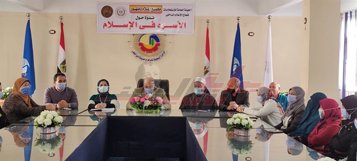 نظم مجمع إعلام دمنهور، بالتعاون مع مجلس مدينة أبو حمص ومع الأخذ بجميع الإجراءات الاحترازية للحد من عدوى فيروس كورونا المستجد ندوة إعلامية بعنوان "الأسرة في الإسلام" بقاعة مجس المدينة.