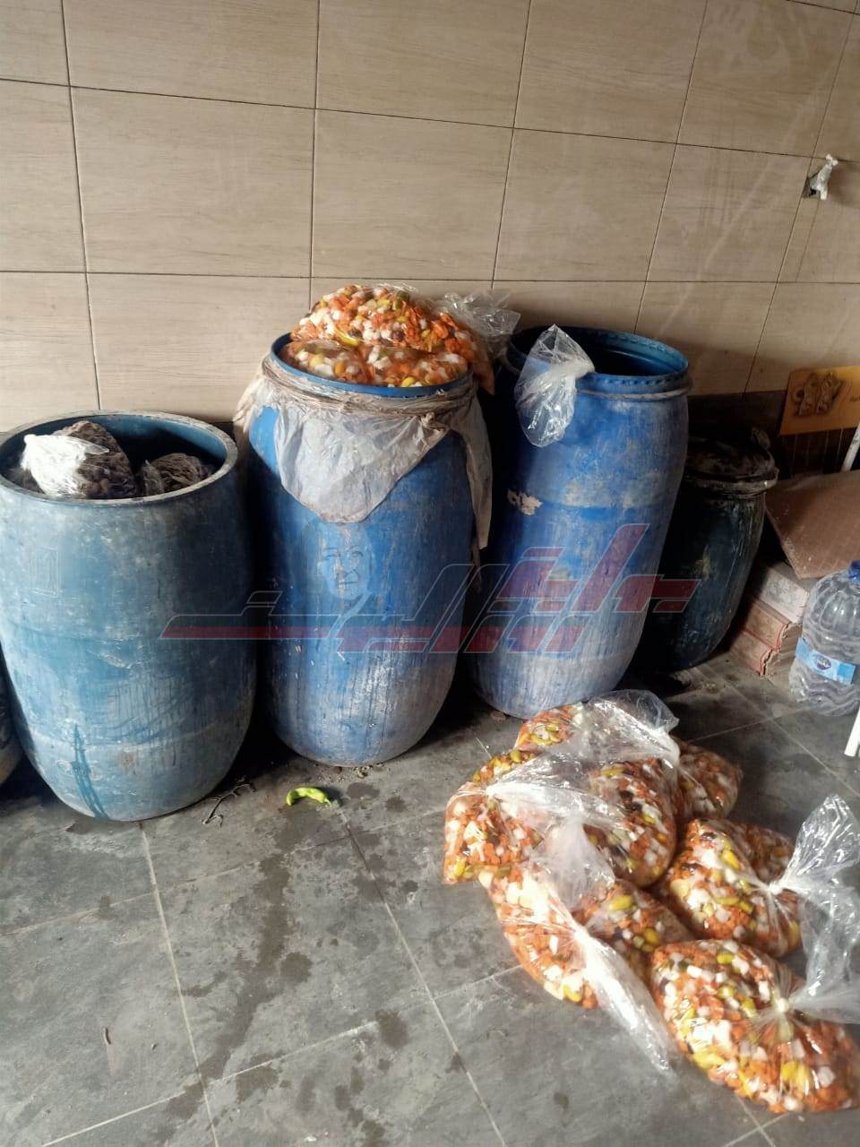 وبالمرور علي الأسواق والمحال التجارية ومحال المواد الغذائية تم ضبط 1980 عبوة زيت زيتون غش تجاري و عدد 200 طن ملح سياحات للاستخدام الصناعي ويتم التعبئة كملح طعام غش تجاري، 1200 كيلو زيتون أخضر و 250 عبوة مبيدات مجهولة المصدر و ضبط 5 كيلو مخلل - 5 عدايه خيار للتخليل - 2 عدايه طماطم - 5 كيلو أجنحة طيور غير صالحة للاستخدام الادامى، برميل طحينه و 54 كيس مخللات بوزن كل كيس 5 كيلو غير مدون عليهم اى بيانات و ضبط 5 طن كيماوى مدعم بغرض البيع بالسوق السوداء.