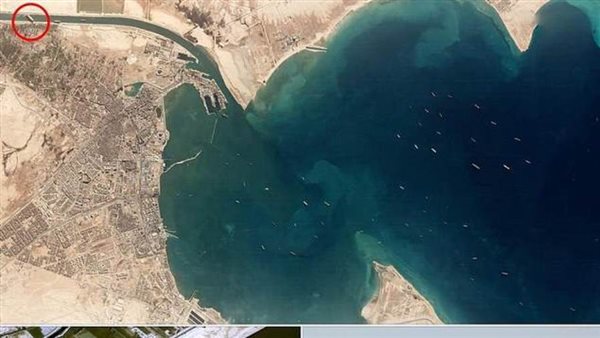 تُظهر الصور الملتقطة بواسطة قمر صناعي عابر أكثر من 50 سفينة ترسو في خليج السويس، أحد "فرعين" في الطرف الشمالي للبحر الأحمر، حيث تدخل القناة المؤدية إلى البحر الأبيض المتوسط، بالإضافة لأكثر من 200سفينة في البحرين الأحمر والمتوسط أمام مدخلي القناة الشمالي والجنوبي.