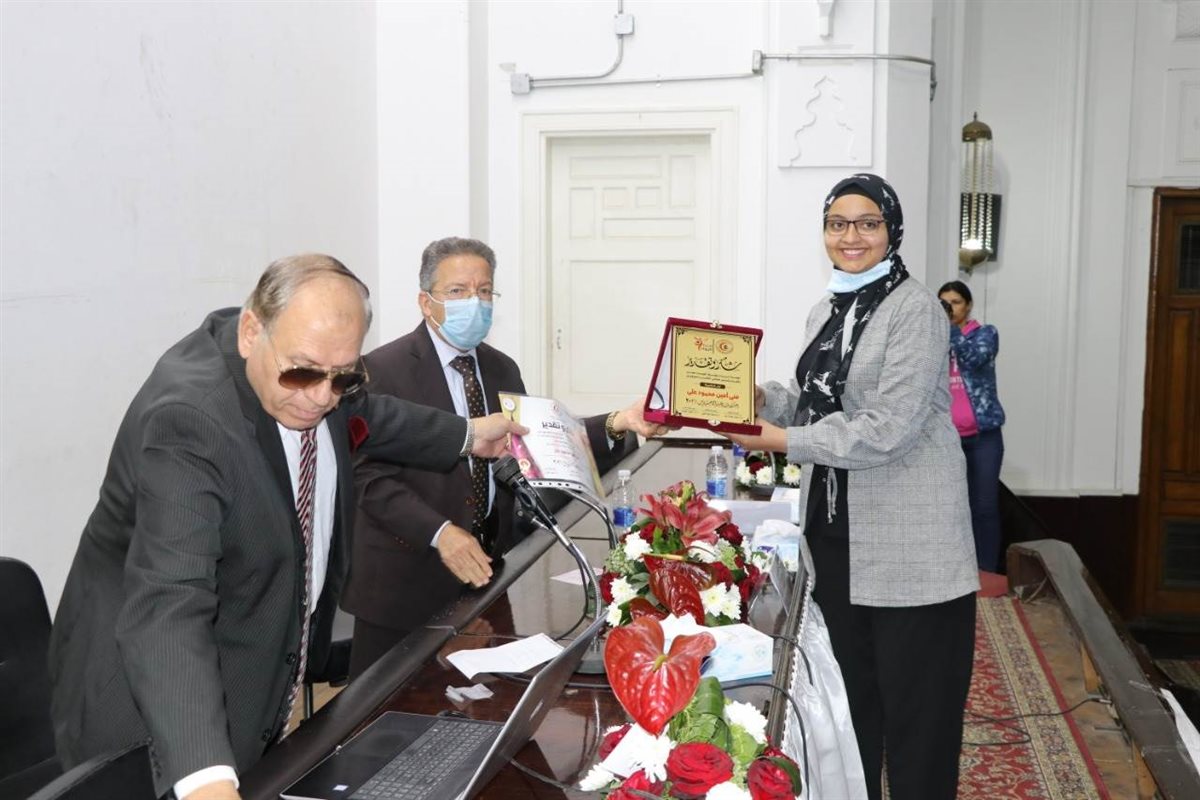 وخلال الاحتفالية تم عرض فيلم عن أم الأطباء المصريين وتم تكريم اسمها وتسلمت التكريم الدكتورة عزة ابو الفضل استاذ طب الاطفال جامعة بنها .