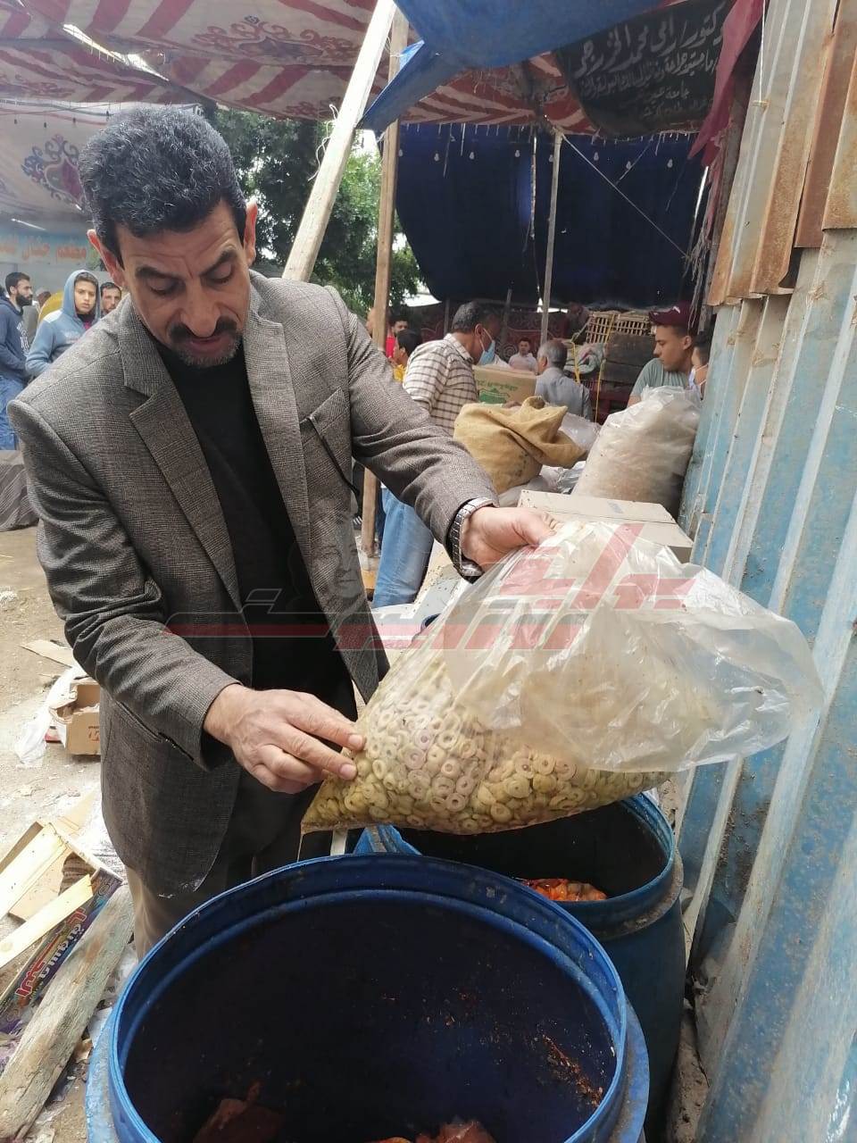 وبالمرور علي الأسواق والمحال التجارية ومحال المواد الغذائية تم ضبط مصنع مخللات غير حاصل علي ترخيص مزاولة نشاط صناعي و التحفظ علي 100طن مخلل متنوع ظاهر عليه علامات التلف والعفونة عبارة عن 1000 برميل زنة البرميل 100 كجم 850 كجم ملح بدون أي تاريخ إنتاج أو صلاحية - 20 طن مخلل لفت متغير الصفات الطبيعية وتظهر عليه علامات العفونه، كما تم ضبط مخزن مواد غذائيه غير مرخص والتحفظ على 150 كرتونة حلوي سوداني زنه الواحدة ٢ كجم بإجمالي 300 كجم مجهولة المصدر.