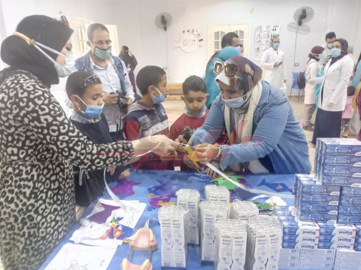 كما تم عقد ندوة تثقيفية للاطفال عن الاهتمام بنظافة وعناية الاسنان، وخلال القافلة توزيع "فرش ومعجون أسنان علي الاطفال" إلى جانب عمل مسرح عرائس للاطفال.