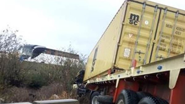 وكان اللواء محمد الألفى، مدير أمن السويس، قد تلقى إخطارًا من قوات تأمين الطرق بوقوع حادث انقلاب حاوية من على سيارة نقل على أتوبيس عمال بطريق السويس – العين السخنة.