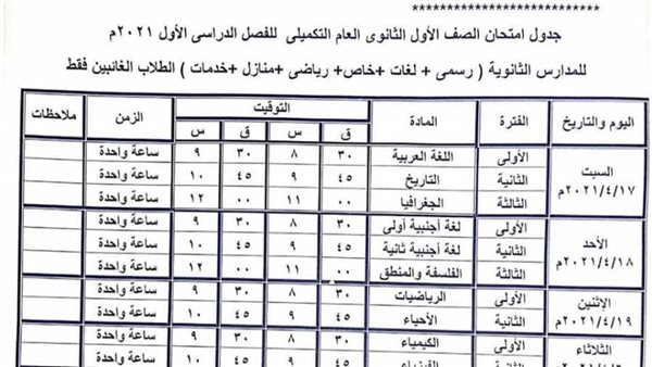 تبدأ غدا السبت بالمنيا امتحانات الصفين الأول والثاني الثانوي العام التكميلي للفصل الدراسي الأول 2021 للطلاب الغائبين فقط الذين لم يتمكنوا من حضور الامتحان السابق.