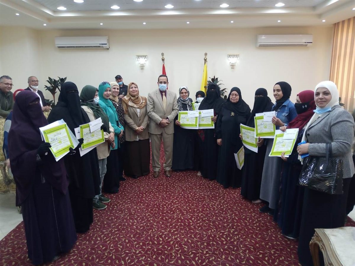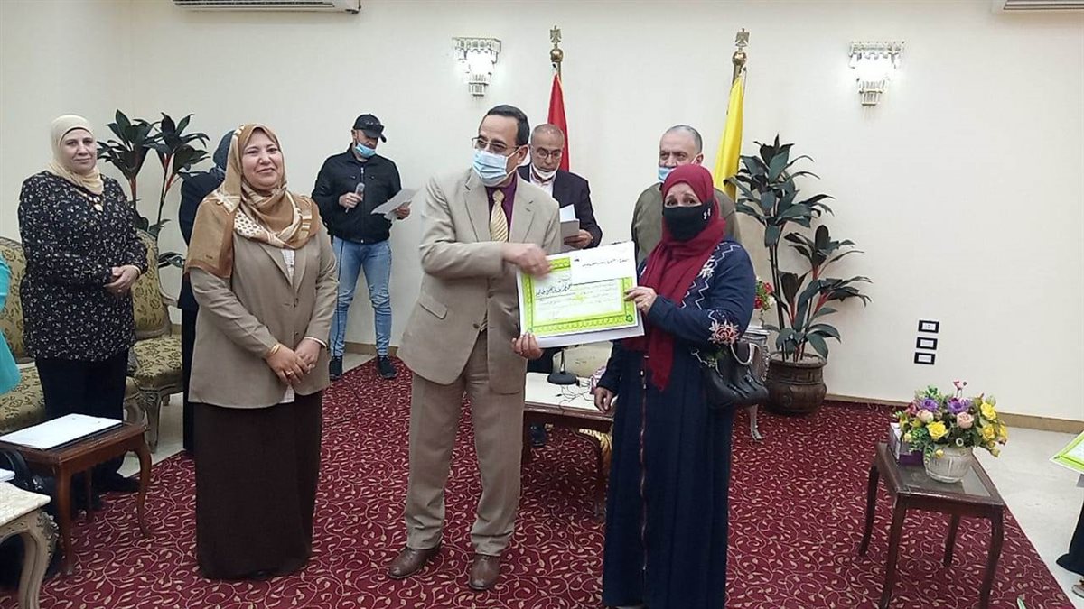 وقام المحافظ بتكريمهن بمنحهن شهادات التقدير والجوائز المالية.