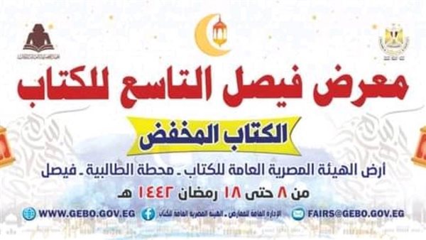 تستعد الهيئة المصرية العامة للكتاب، برئاسة الدكتور هيثم الحاج علي، لإقامة معرض فيصل الرمضاني التاسع للكتاب بأرض الهيئة بشارع فيصل الطالبية فى الفترة من ٨ حتى ١٨ رمضان.
