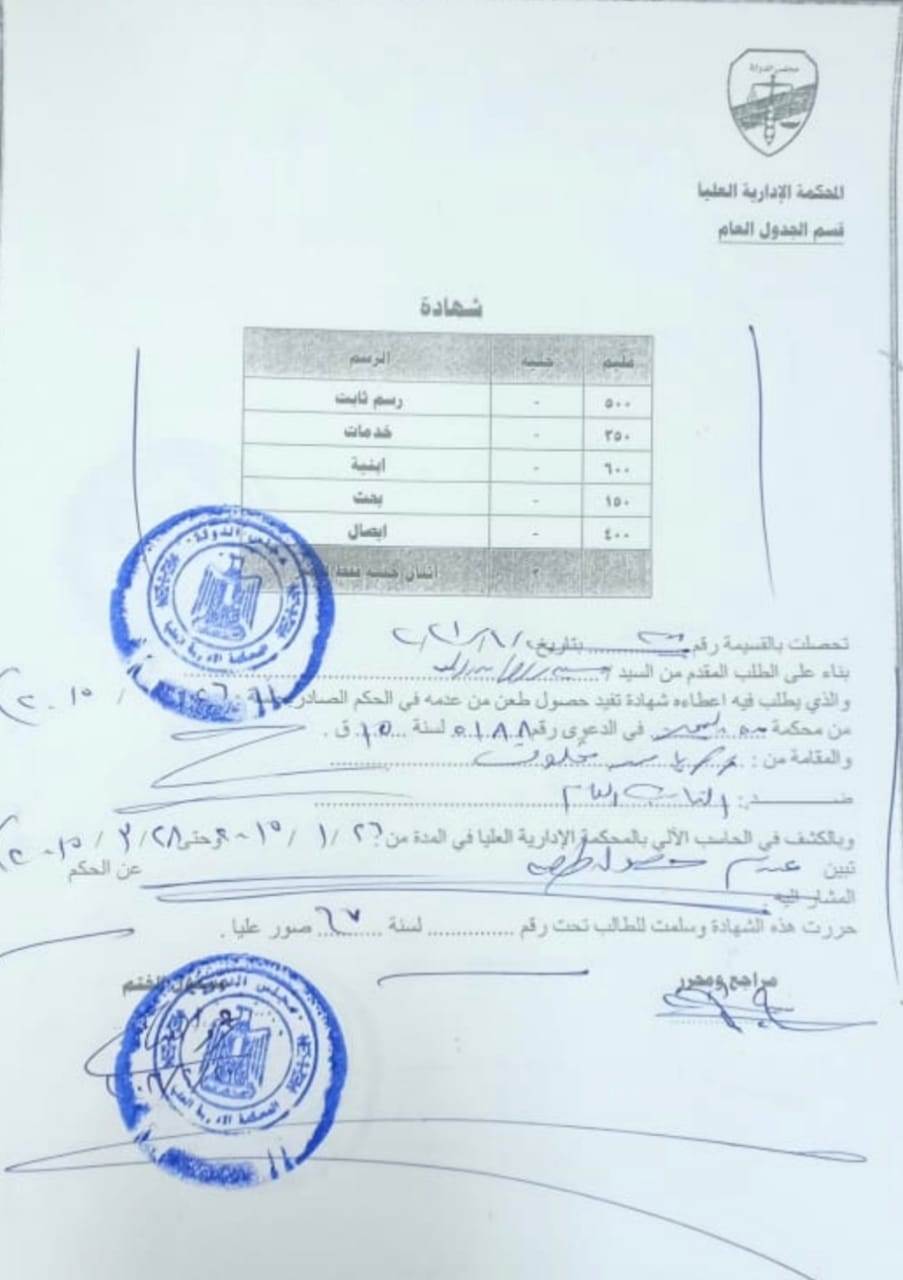 أثبتت شهادة من جدول المحكمة الإدارية العليا فى إبريل 2021 نهائية الحكم التاريخى الذي أصدره القاضى المصري المستشار الدكتور محمد عبد الوهاب خفاجى نائب رئيس مجلس الدولة رئيس محكمة القضاء الإداري بالإسكندرية الدائرة الأولى بحيرة فى 26 يناير 2015 فى الدعوى رقم 5188 لسنة 15 ق بتأييد قرار النيابة العامة بإحالة الإرهابيين المعتدين على المنشاَت العامة والحيوية المؤمنة بالقوات المسلحة للقضاء العسكرى .