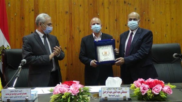 وقدم رئيس الجامعة درع الجامعة للعقيد أسامة فوزي مدير الأمن الإداري تقديراً لما قدمه من جهد وتفاني وحرص على خدمة الجامعة خلال فترة توليه العمل بالجامعة وحتى بلوغه السن القانونية.
