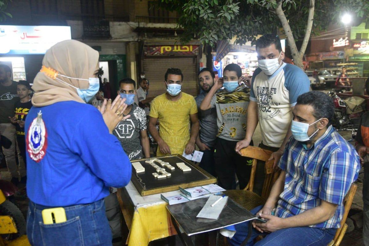 وتم المرور على المقاهي، والمحلات التجارية، والأسواق ومواقف المواصلات العامة، ودور العبادة (المساجد والكنائس)، والأراضي الزراعية، لتوعية المواطنين المترددين على تلك الأماكن وأصحاب الأعمال بالالتزام بالإجراءات الوقائية والاحترازية، وتم توزيع مستلزمات وقائية (كمامات، مطهرات) على المواطنين.