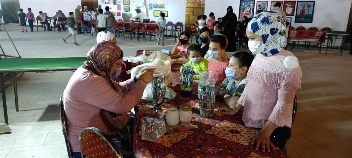 وفي ركن الطفل أقيمت العديد من الورش المتنوعة التي جذبت الأطفال، لتعليمهم وإكسابهم مهارات مختلفة في تدوير الخامات، منها ورشة "رسم حر لأشكال رمضانية بألوان الفلوماستر، ورشة حلي، أركيت، موزاييك، صناعة أشكال مختلفة من الإكسسوارات.