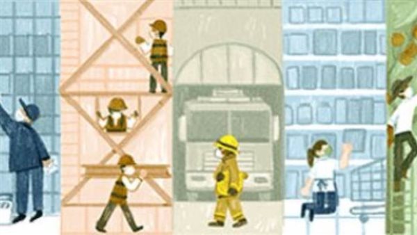 جوجل يحتفل بمناسبة عيد العمال 2021 .. والكمامة شعار الجميع في ظل كورونا