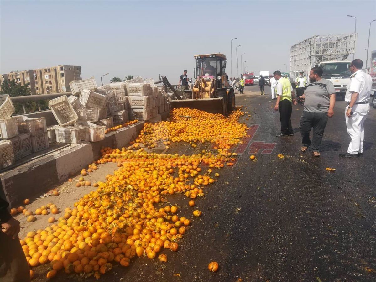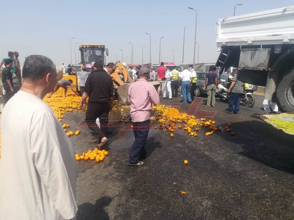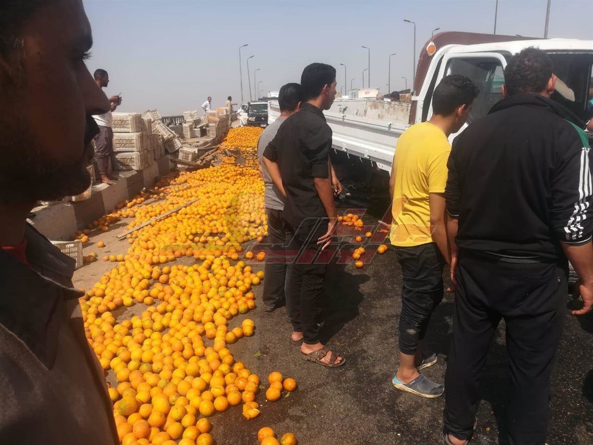 بسبب سيارة برتقال توقف حركة المرور بالطريق الزراعي عند قها