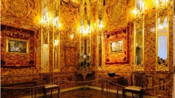 ومثل الغرفة الأصلية، تتميز غرفة Amber التي أعيد بناؤها بالعنبر المثبتة على جدران من أوراق الذهب "Credit: Ivan Vdovin / Alamy".